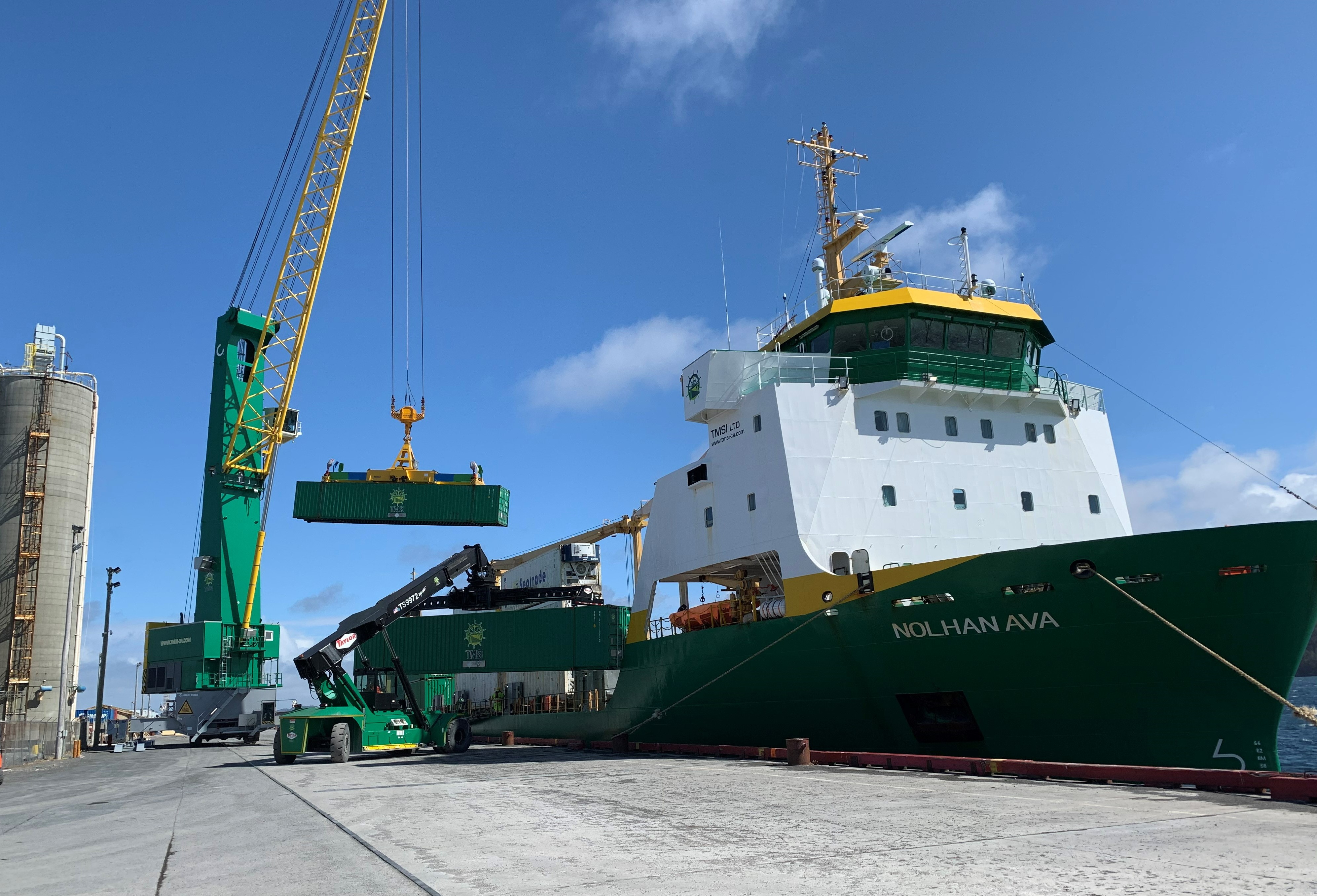 The NOLHAN AVA (IMO: 9208435) is a RORO/LOLO vessel of 409 TEU and/or 475 meters of rolling stock track, and flying the Canadian flag. She has a load capacity of 4758 gross tons storage on deck and under deck, and a draught of 5.3 meters. She has an overall length (LOA) of 119.99 meters and a beam of 18 meters.